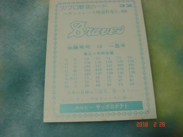 カルビー '77年 プロ野球カード NO.32 (加藤/阪急) 青版