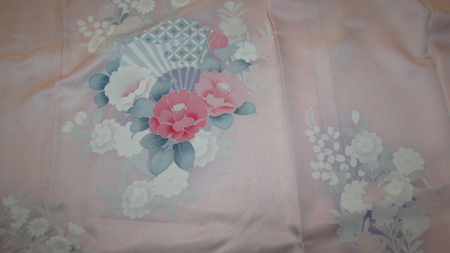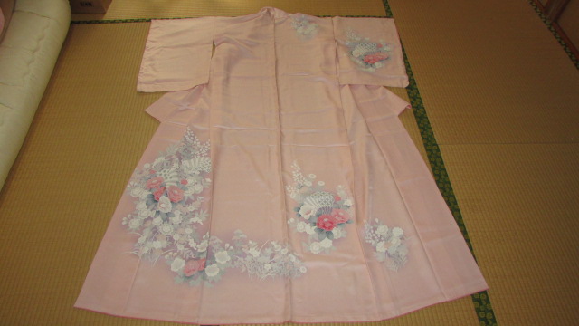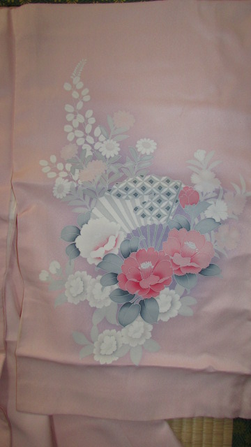 1000円値引き(着物屋・蔵出し)(古布・淡いピンク色地の牡丹など花模様着物)