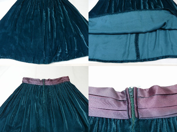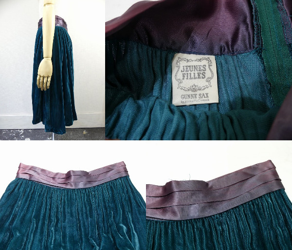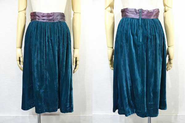 | こちらは、80年代頃のGUNNE SAXのベロア スカートです。 明るいブルーグリーンが珍しいお色で、ウエスト部分のサテンとの相性も抜群です。シルエットも綺麗で裏地はございませんが透けません。トップスをインにしてコーディネートして頂くのに最適のデザインです。もちろん普通にも着れます。GUNNE SAXはとても人気で探している方も多いかと思います。この機会にいかがでしょうか。 コンディションは多少の使用感があり、ウエストのサテン生地に色あせがございますが、最初からのお色に見えなくもなく、光の加減では気にならない程度かと思います。汚れやダメージなどは無い様に思います。 素材 ポリエステル? サイズ (着用感Mサイズ位) ウエスト67cm 総丈68cm 撮影用BODYサイズ 肩幅37cm バスト82cm ウエスト60cm ヒップ86cm 素人採寸の為、多少の誤差はご了承ください。 |