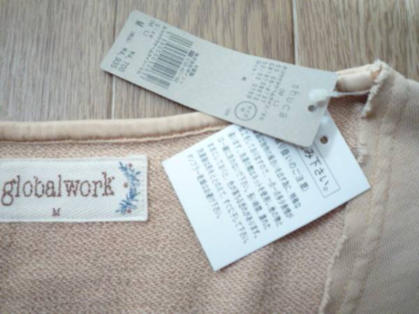 未使用タグ付きグローバルワーク重ね着べージュ裏毛カットソー綿M七分五分袖レイヤードレディース