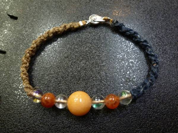 ※自然素材にこだわって、ヘンプ(麻)の草木染糸を使って手編みで造ったマクラメ商品です。
