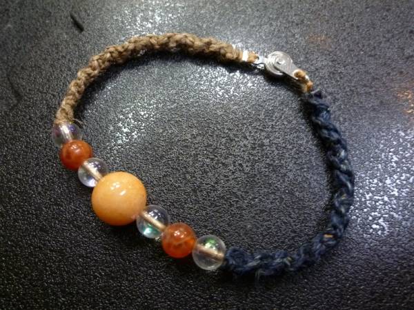 オレンジジェード ファイアーアゲード 水晶オーラ 手編みブレスレット