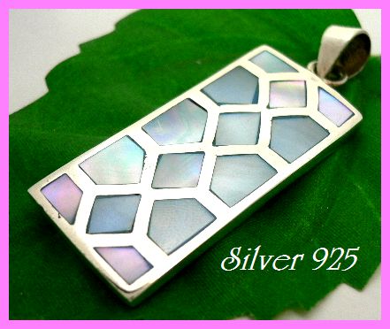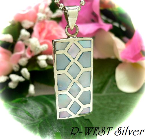 シルバー925銀のシェル貝殻入りインレイ プレート ペンダント/ブルー