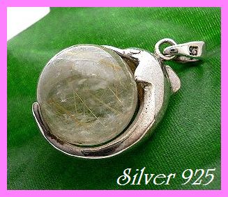 シルバー925銀の天然石ルチルクォーツ ドルフィン イルカ ペンダント