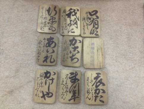 商品説明 | 小倉百人一首 サイズ 札7.6×5×0.6cm 箱27.5×17×6.5cm 札の裏、箱に高橋歯科医院とかいてあります。 札の枚数は数えていないため揃っているかなどはわかりません。 状態に厳しく店頭販売のような状態をお求めの方はご遠慮下さい。 注意事項をよくお読みになってからご入札ください。 ※タイトル末【】内英数字は当方の管理番号です。出品物とは関係ありません※ A-2 |
