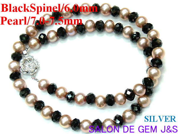 【新品】【希少宝石】【SV:高級天然 ブラックスピネル&天然ナチュラルピンク系パール デザインネックレス】【S6.0mm/P7.0~7.5mm】【長さ:約43.5cm】【高級クラブ使用】【現品お届け】【赤字大処分】【収納化粧箱付】【製作元オークション】【ラッピング無料】