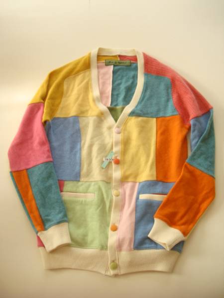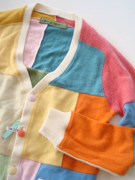 ・こちらは色々なカシミアニットをつなぎ合わせて作られたとてもお洒落なカーディガンになります。