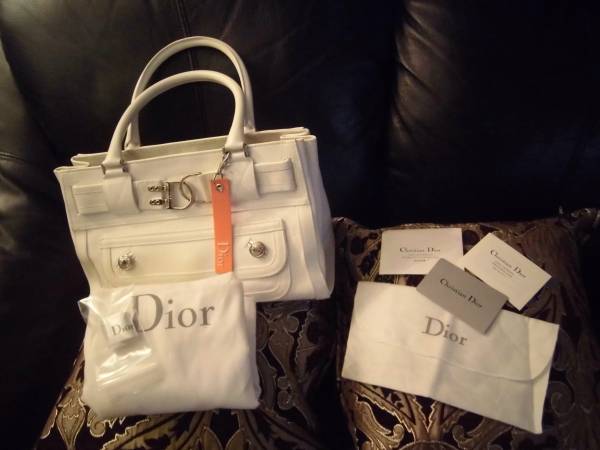 Dior ディオール 本物 鞄 美品 フライト バッグ トート ハンドバッグ トロッター 本革 レザー 白 銀 タグ バッグチャーム チャーム 飾り