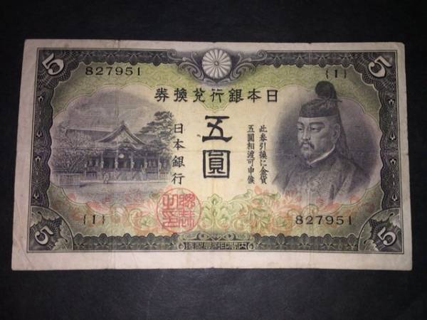 【注目/珍品/レア/希少/貴重】改正兌換券5円 2次5円 組数1