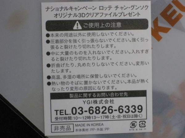 商品はチャン・グンソクさんの非売品3Dクリアファイルです。