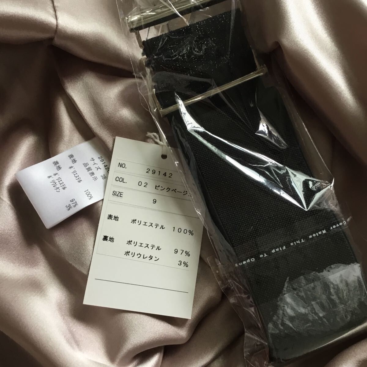 平置き実寸: 着丈約88、身幅46 ※実寸サイズにつきましては、多少の誤差はお許しください。 材質: 表地:ポリエステル100 裏地:ポリエステル97、ポリウレタン3 カラー:ピンクベージュ ※カラーに関しては、一般的に見えるお色を記載しております。 あくまでも私見ですので、予めご了承ください。 デリケートな生地ですので、着用には支障のないうっすら小キズ織り傷があるまもしれません。予めご了承ください。 | ||