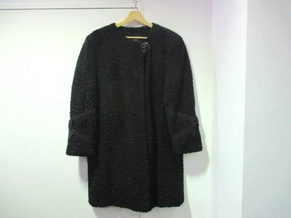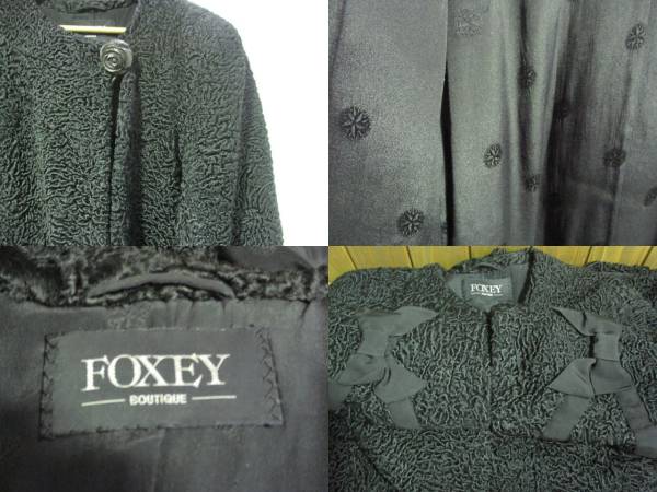 フォクシー FOXEY 袖リボンパイピングノーカラーコートブラック