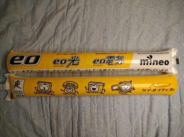 2016年10月30日に開催された大阪マラソン2016で配られたスティックバルーンです。