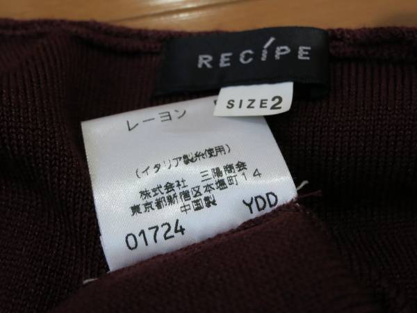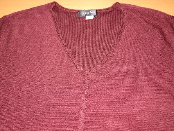 未使用の三陽商会のブランド RECIPE(レシピ) の上質な半袖セーターです。お色はエンジ。サイズは2(9号M相当)。毛50%、レーヨン50%。平置で肩幅36cm、脇下身幅42cm、丈53cmです。とても柔らかで肌触りが良く、艶があり、上質なニットです。ご検討宜しくお願い致します。ノークレーム・ノーリターンでお願いします。(I58)