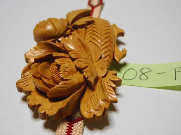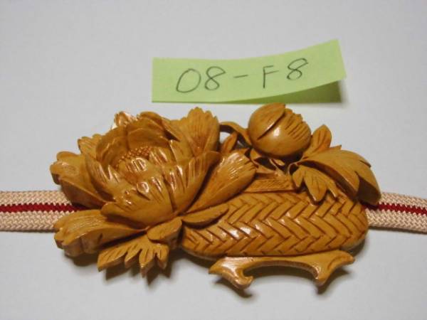 超豪華な柘植細工の篭に牡丹の花の手彫りの帯留/O8-F8