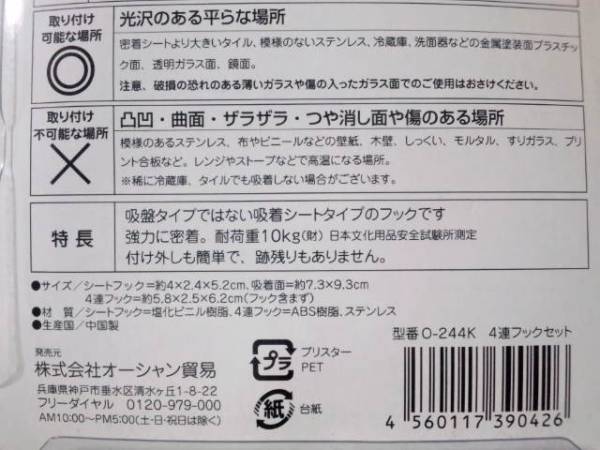 「ファイン シートフック 4連フックセット」は、調理小物等の整理に便利な4連フックです。