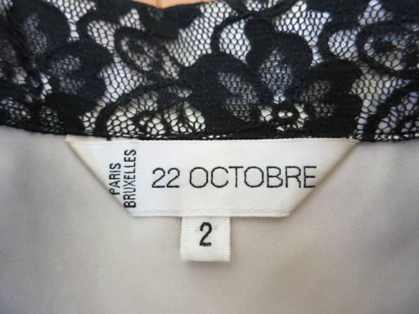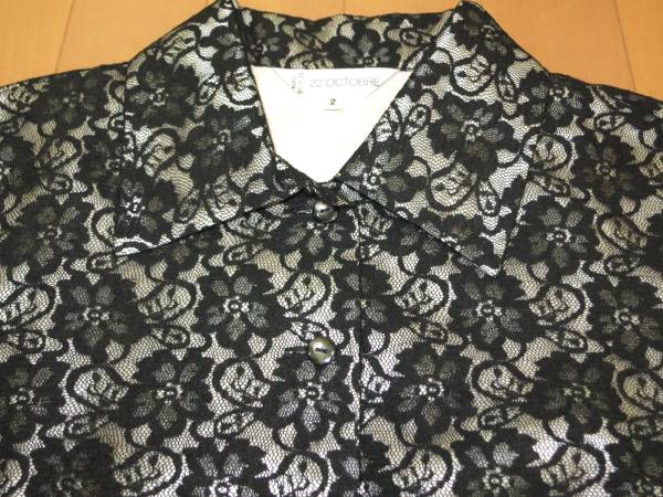 東京スタイル 22 OCTOBRE(22オクトーブル)ブラウスジャケットです。サイズは2(9号M相当)。黒いレースが美しいです。こちらのオークションで購入しましたが使用しないため出品致します。外見的には汚れやひきつれが見当たらず美品ですが、袖口のほつれを服用のボンドで裏で修復した跡があります。見えない部分なので着用には問題ないですが、完璧なものをお求めの方は入札をお控え下さい。平置で肩幅37cm、脇下身幅47cm、丈60cmです。ポリエステル100%。とてもエレガントです。ご検討宜しくお願い致します。ノークレーム・ノーリターンでお願いします。(H15)