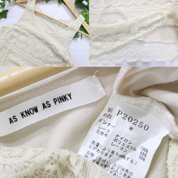 ◆AS KNOW AS PINKY アズノウアズ◆/ロング丈レースタンクトップ/a142