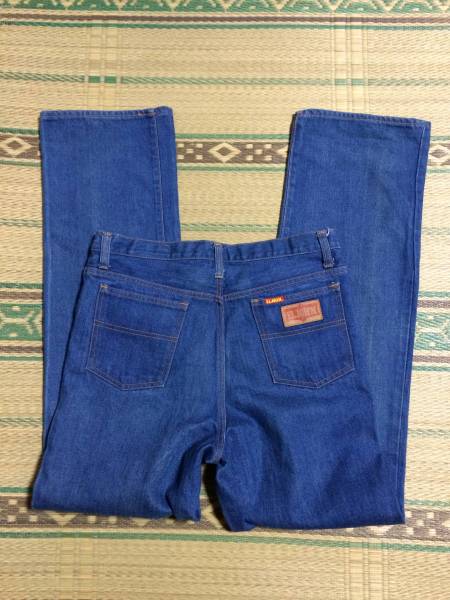 本商品平置きウエスト約43.股下約85です、老舗ジーンズショップの蔵出し品です、シルエットはこの年代にしては珍しくストレートだと思います、前左右に縦に長期経年劣化なりの日焼け的な物がありますがビンテージなりに致命的では無いと思います、出来たて新品をお探しの方はご遠慮下さい、脇割、ボタン類スコービル、こだわりのリベット、トップボタン、表記88とありますがW34位に分類しております、頑丈なジーンズと言った印象です、