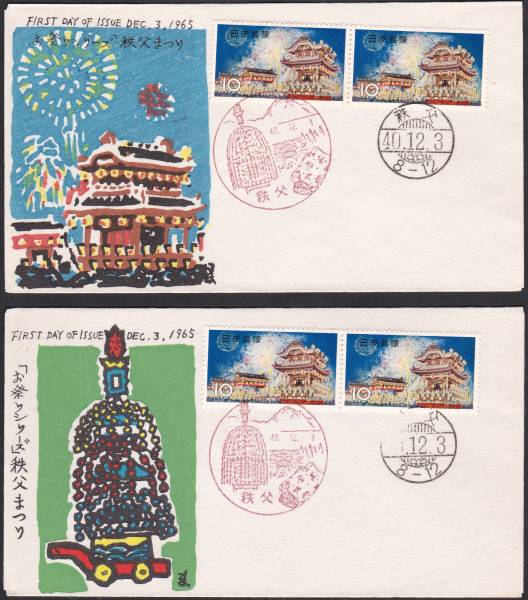 FDC 1965年 お祭りシリーズ 秩父P貼2種 中村浪静堂
