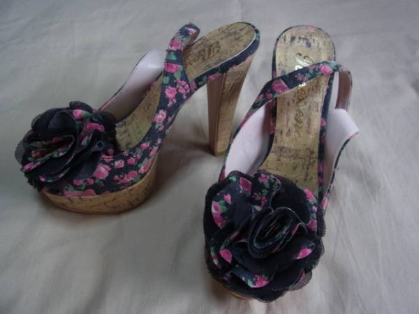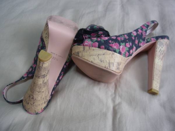 ROSESSENCE ローズエッセンス 花柄 サンダル 22 1/2 ヒール高さ:12cm USED 使用に伴うスレ、よれ、汚れがありますので、神経質な方は入札を御遠慮願います。 見落としや、お伝えし切れないダメージがあることがあります。気になる点、ご不明な点等あればご質問いただきますよう宜しくお願い致します。 画像のものですべてです。 ノークレーム・ノーリターンでお願いします。