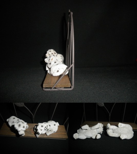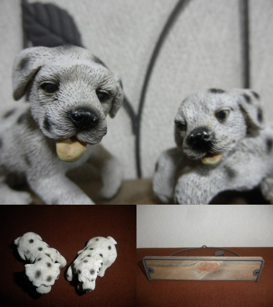 | ご覧頂ましてありがとうございます。 レトロな鉄の棚に木の棚そして石で作製されたかわいいワンちゃん(ザルメシアン犬)が2匹乗っています。 これって癒されませんか? ワンちゃんに経年の色落ちが見られます。 レトロ品をご理解ください。 壁などに吊りさげてインテリアもしくはお店のディスプレィにいかがですか? かわいいワンちゃんが、あなたをお待ちしております。 鉄の棚 サイズ 高さ16cm 横幅20cm 奥行5cm ワンちゃん サイズ 高さ5cm 横長さ5.5cm サイズ 高さ4cm 横長さ6.5cm 送料 定形外700円可 | |||