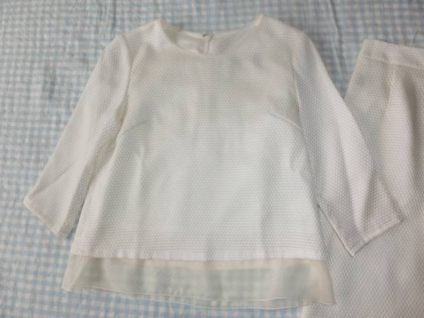 定価14000円(税抜き) 色はオフホワイト レースはうすクリーム 素材:ポリエステル55%綿45% 別地ポリエステル100%裏地はポリエステル100% サイズ36 シャツ:肩幅35cm胸幅42cm袖丈38cm着丈45cm(透けない部分42cm) スカート:ウエスト62cm着丈56cm(透けるレース部分は3cm) 他にも洋服、バッグ、靴、小物、本を出品していますので見てください。