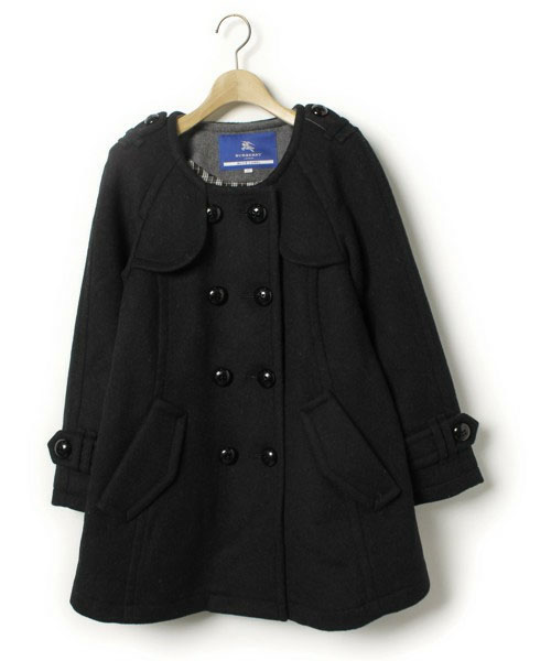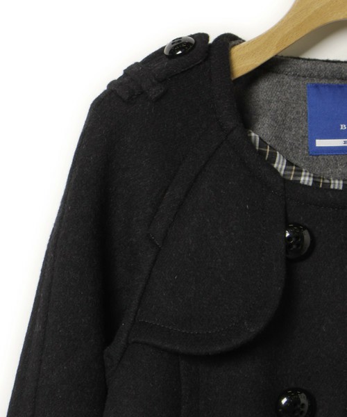 バーバリーブルーレーベルの店舗限定ノーカラーコートです。