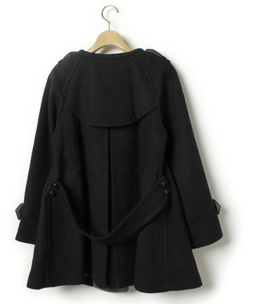 肩にはエポーレットが付いており、背中にはトレンチコートのようなベルトの装飾があしらわれています。