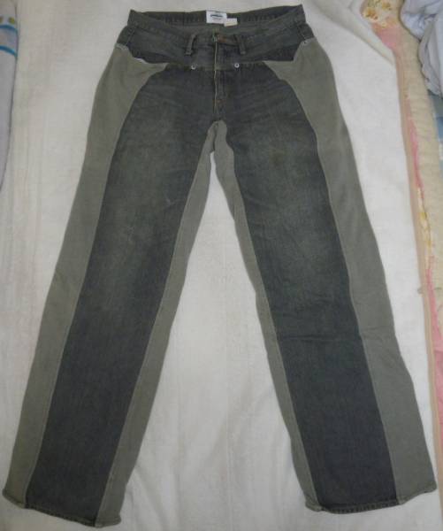 デザイン性の高いデニムになり、黒のUSED加工を施したデニム地とスエット地の切り返し、後ろの革パッチなどかなり手の込んだデニムになります。