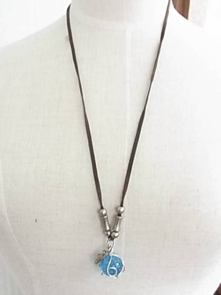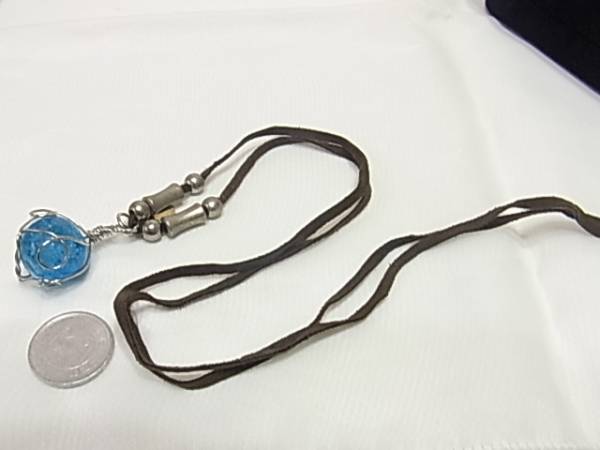 スカイブルーのストーンに十字架チャーム付きロングネックレス▽