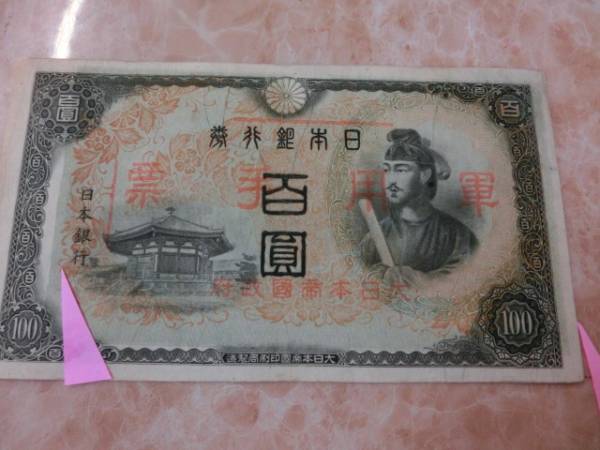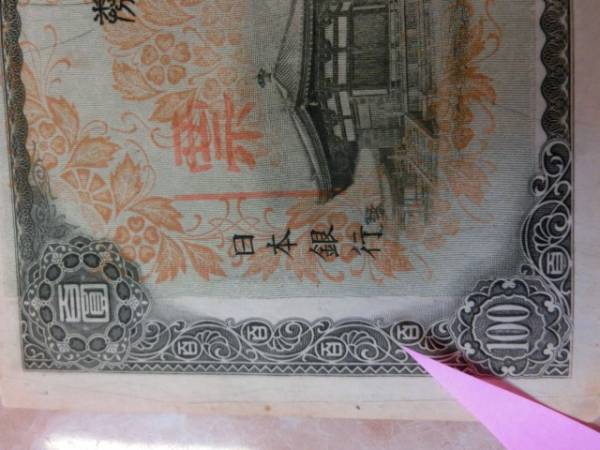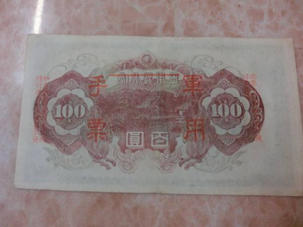 日華事変軍票 乙号100円で下地の印刷が左にズレ有りです。