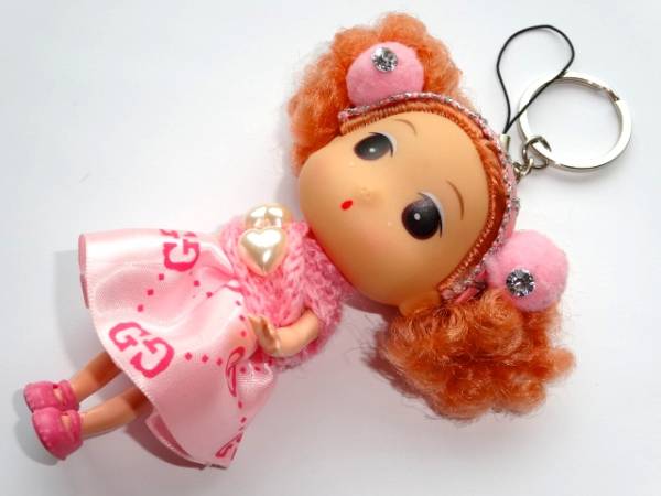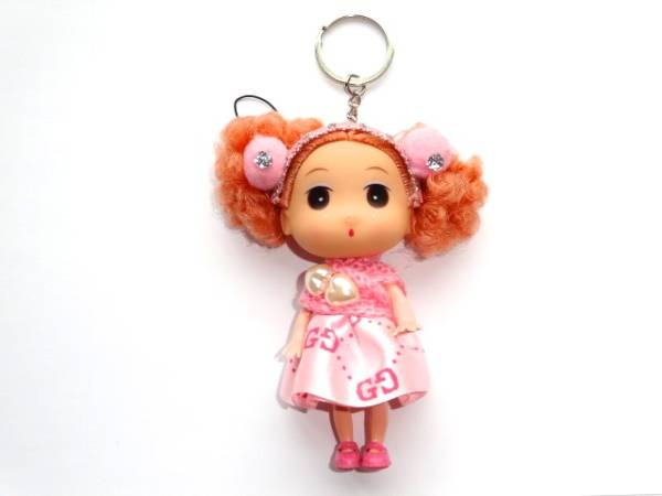 ● 女の子 大きめストラップ 人形 ラインストーン キーホルダー 新品 カーリーヘアー かわいらしい