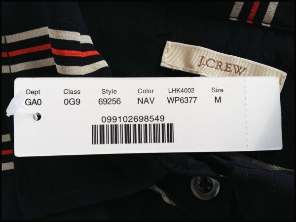 新品タグ付き◆J.CREWジェイクルーチュニックシャツストライプシルク100%Mネイビーです。
