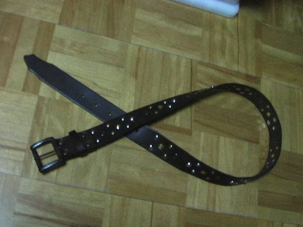 (^^) ベルト 本革 カシメ ユニセックス ドット ヌメ革 チョコ 茶 牛革 メンズ
