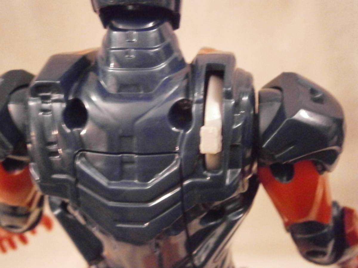アイアンマンに登場するウォーマシーンです。こちらは、アメリカ国旗をイメージさせるデザインになっています。背中の右上にあるバーを動かすと音がなり胸のマークが光ります。