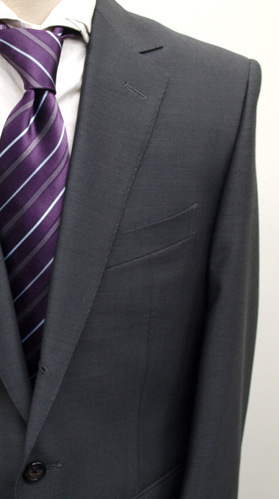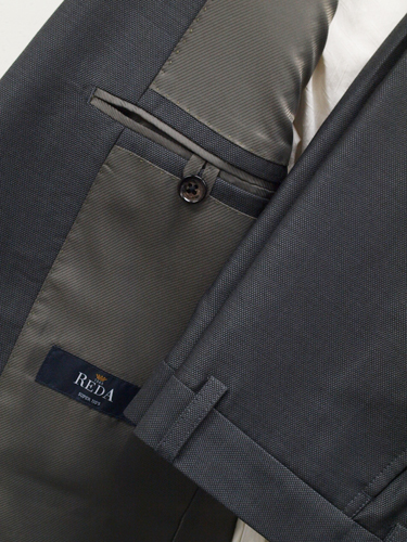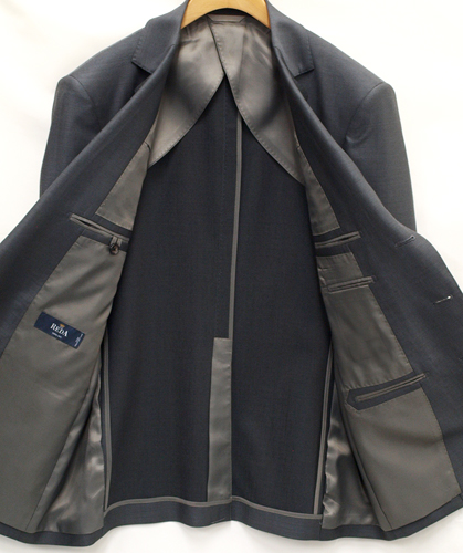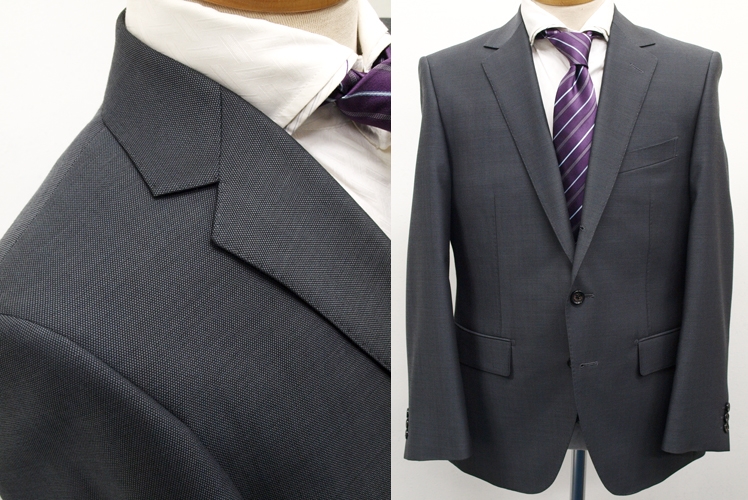 【サイズ】 AB4 目安の体型 身長160cm~170cm、ウエストサイズ84cm前後 【ジャケット実寸】 肩幅44cm 着丈67.5cm 袖丈59.5cm 脇下部分50cm 身幅47cm 【パンツ実寸】 ウエスト(胴回り実寸)84cm 平置きでかるくはかると84cmでひっぱってはかると86cmです。股上が浅めのため2cmほど実寸が大きく作られております。 わたり幅31.5cm 股下10cm下部分28.5cm 裾幅18.5cm 脇股上22.5cm 前股上24.5cm 股下91cm(裾上げしていない状態/新品) 【デザイン】 すっきりとしたコンパクトな印象の細身シルエット、タイトフィットスリムスーツ新品、裾上げしていない状態です。 ・ジャケットは一番上のボタンをかけずに着るタイプ、段返りシングル3つボタンでタイトフィットスリムモデル ・パンツは股上が浅めで細いシルエットのノータックスリムテーパードパンツ 【仕様】 ・ジャケットは段返りシングル3つボタン(一番上のボタンをかけずにシングル2つボタンとして着るタイプです。)、ノッチドラペル、襟縁等AMFステッチ入り、袖口ボタン3つ、センターベント、内ポケット4つ(小ポケット2つ含む)、背抜き(春夏物) ・パンツはノータック、膝裏当て付き、脇ポケット斜め付け、後ろポケット両玉縁で左のみボタン付き、フロントはファスナーでボタン&ホック仕様、うちかけボタン有り 使用付属(毛芯、裏地、ボタン等々)もワンランク上のを使い、細部まできれいな縫製仕立てで仕上がっております。 【素材】 表地:ウール100% 裏地:胴裏/ポリエステル100% 袖裏/キュプラ100% ・イタリア、REDA社のSUPER110'S生地を使用 【色】 グレー系 【柄】 黒にちかい濃グレー地にチャコールグレーのバーズアイ織柄 真夏向けの盛夏スーツと比べると厚みのある春夏用紳士スーツ向け生地です。 高級イタリア製生地特有のとてもなめらかな触り心地で上品な艶感のある上質な素材です。 ・秋口~冬~春先にかけて秋冬シーズン対応商品です。