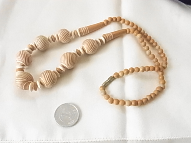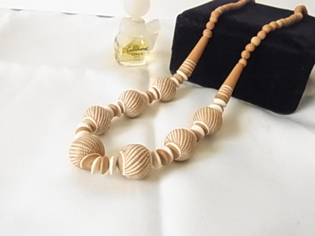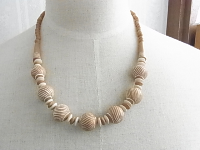 ♪木製調のビーズ アジアンテイストの個性的なデザイン ベージュブラウン ブラウンベージュ ネックレス
