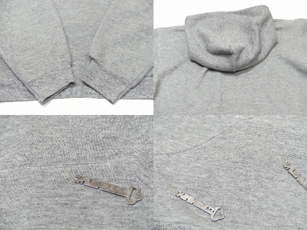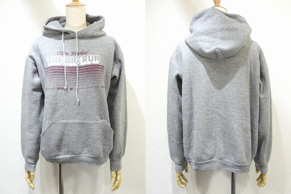 | こちらは、~80年代頃のラッセル アスレチックのスエット パーカーになります。 厚みのないスウェット生地は着心地も良く、グレーのお色は合わせやすくとても重宝しそうです。定番デザインのスウェットパーカーは何枚あっても便利です。デイリー使いにピッタリですのでお勧めです。 コンディションは多少の使用感があり、正面ポケットに薄いシミがございますが、個人的には、古着特有の味としてお楽しみ頂ける程度かと思います。 素材 コットン×ポリエステル SIZE M 肩幅50cm(オフショルダーです) 身幅106cm 袖丈51cm 着丈56cm 撮影用BODYサイズ 肩幅37cm バスト82cm ウエスト60cm ヒップ86cm 素人採寸の為、多少の誤差はご了承ください。 |