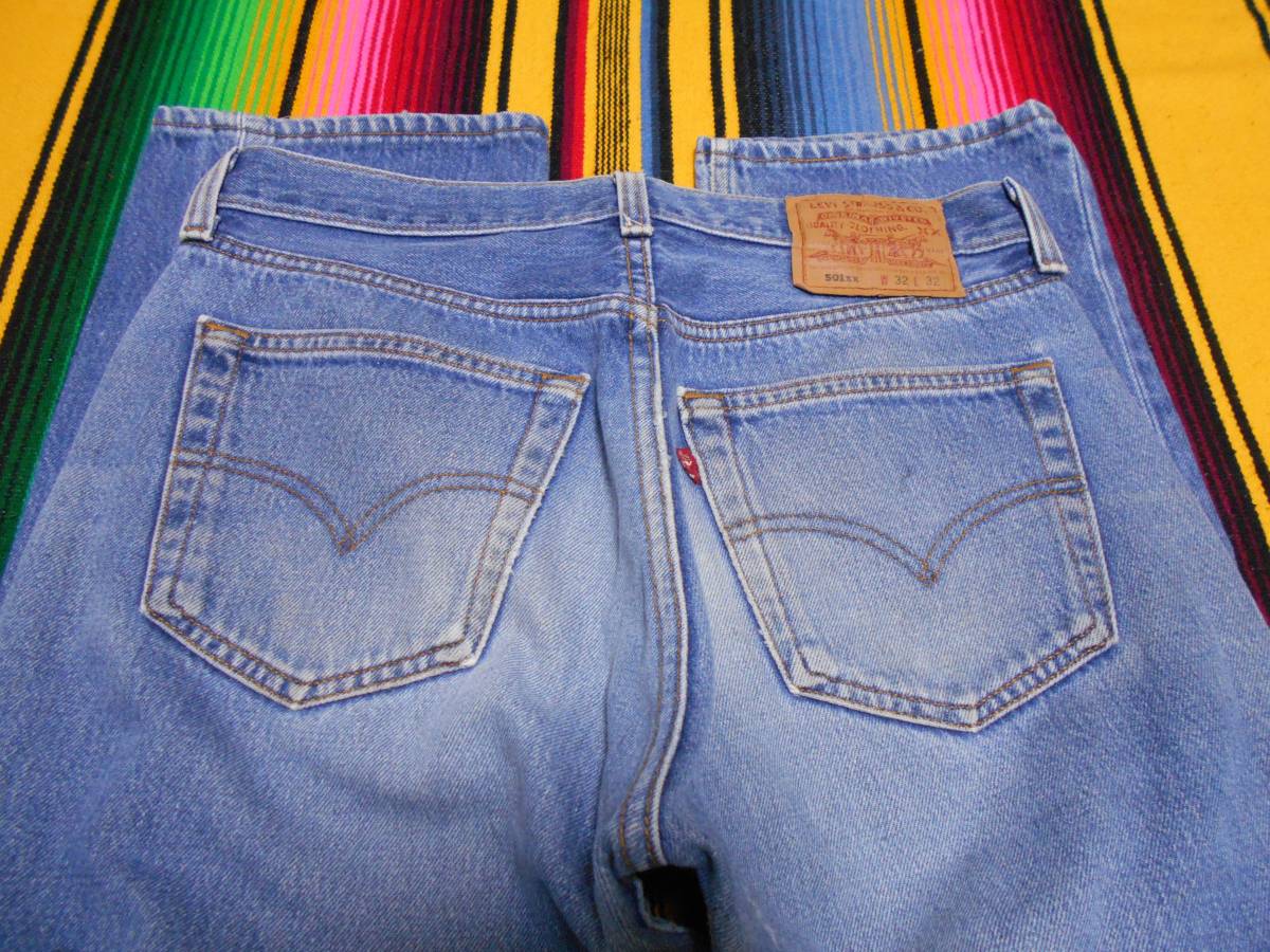 1990S ビンテージ USA製 501 特有のオリジナルの股上浅めで洗練されたシルエットライン、インディゴデニム素材感、風合い有るナチュラルな縦色落ち感が極めて良い感じ