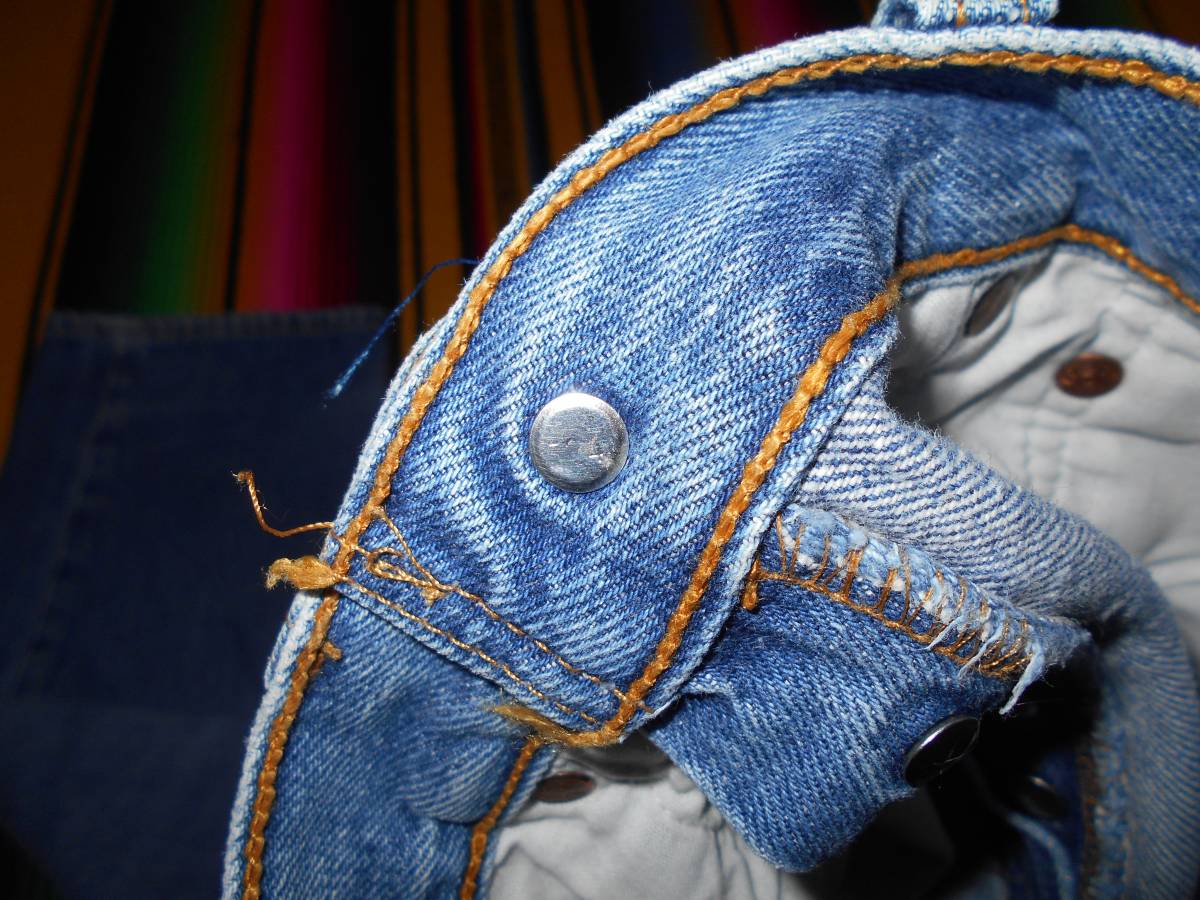 写真でご確認困難な フロントボタンホール、インナーポケットバッグ、股のデニム生地接合部分、すべて状態良好。