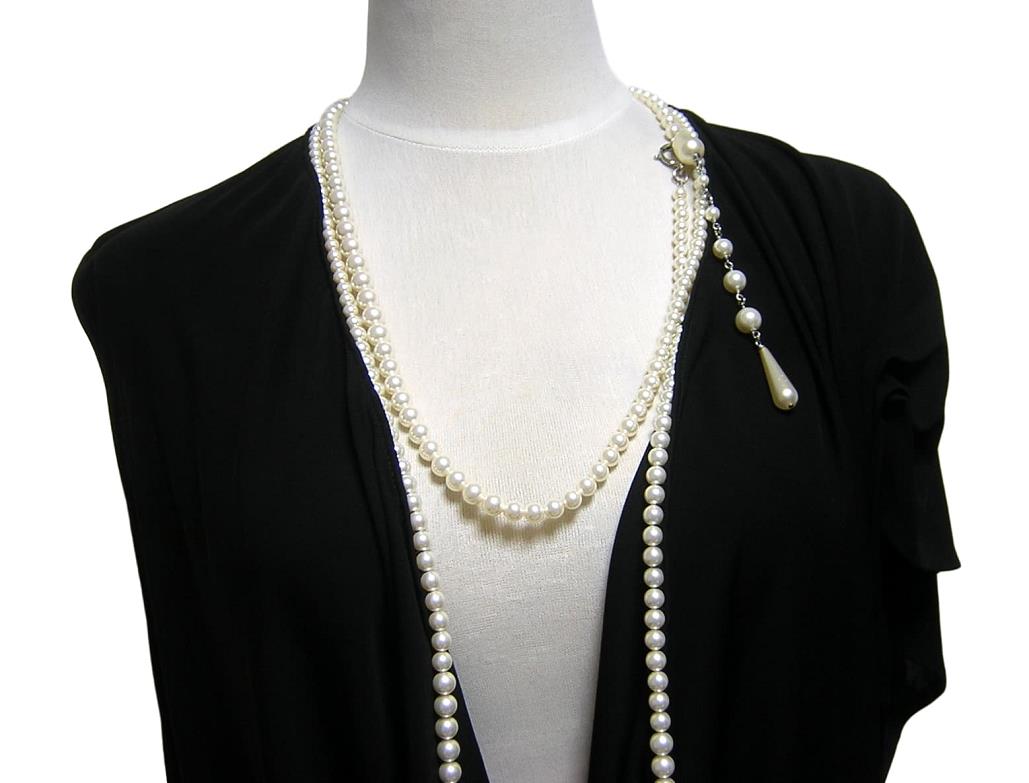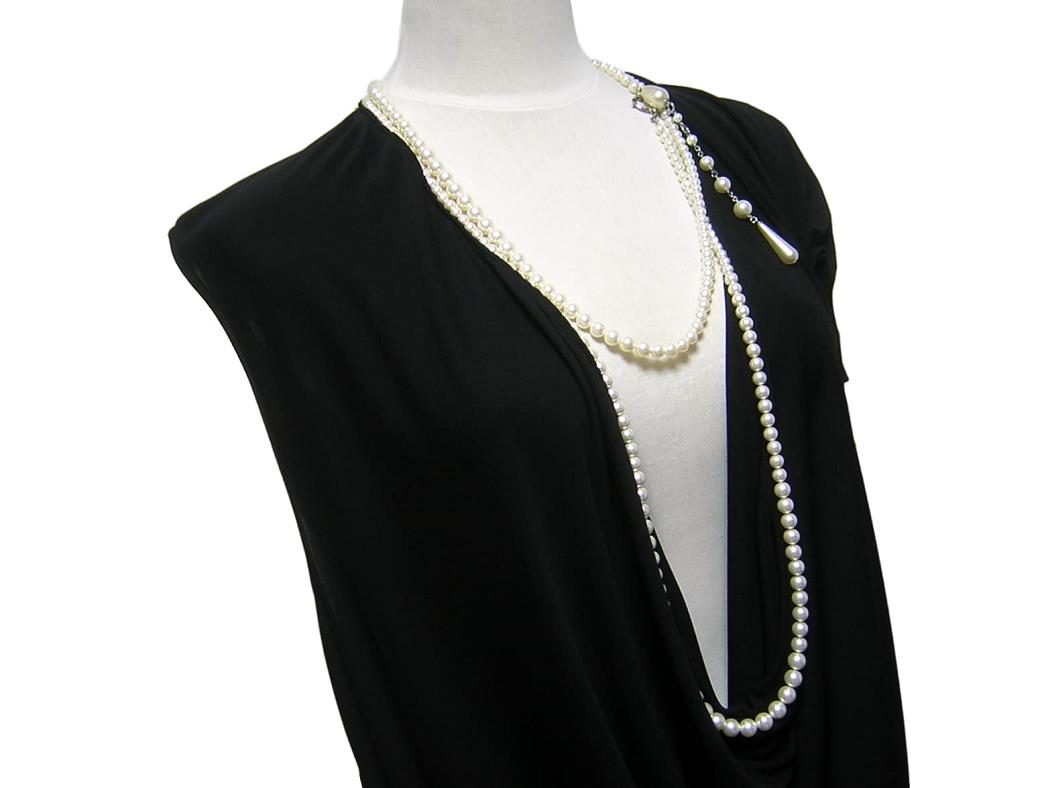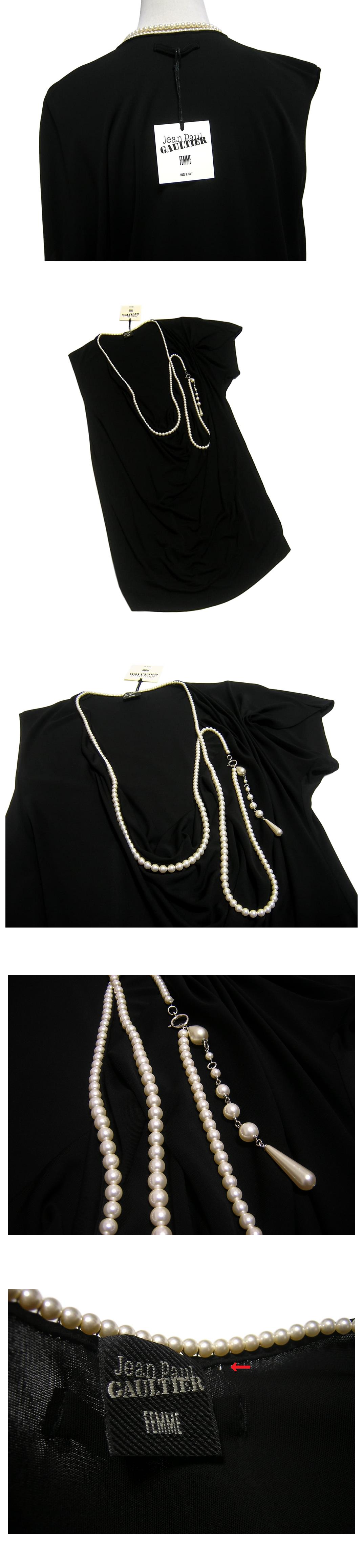 Jean Paul GAULTIER FEMME のイタリア製、 パールネックレス付き変形ブラウスでございます。 アシンメトリー/パール取り外し不可 | |