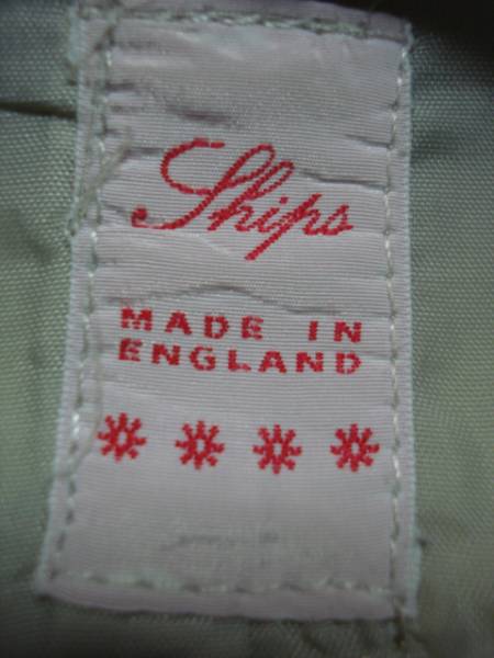 高級人気ブランド SHIPS(シップス) のベージュ~カーキ系色地ステンカラー系デザインコート・イギリス製レトロビンテージ系本格トラッドタイプのお洒落でガーリーな高級モデルです。