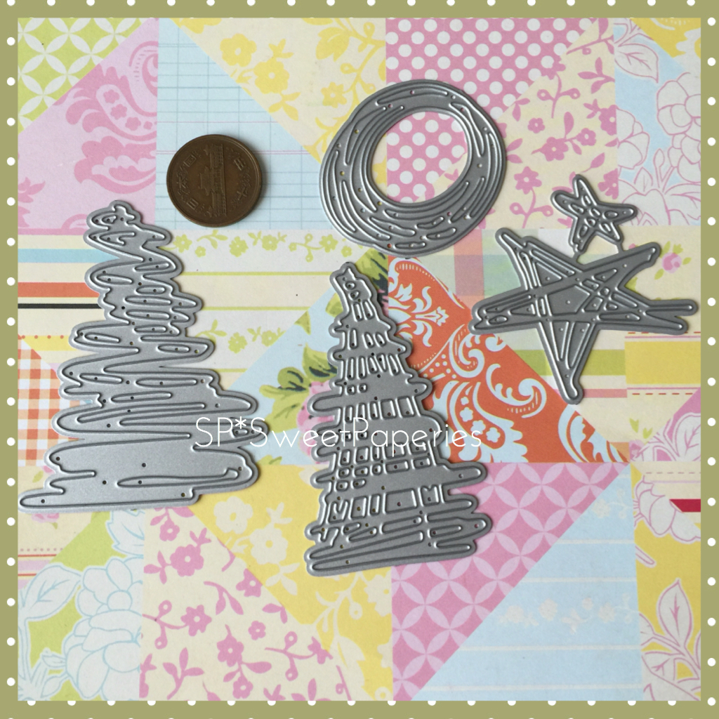 ダイ 手書き風 ハンドライティングスタイル スクリブル クリスマスツリー サークル スター 星 カッティングダイ ダイ Christmas