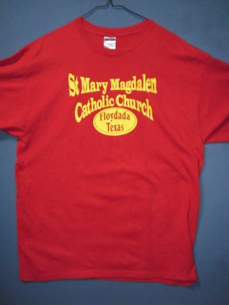 ⑤ USA古着 サイズXL 前後 St Mary Magdaden 赤色半袖Tシャツ