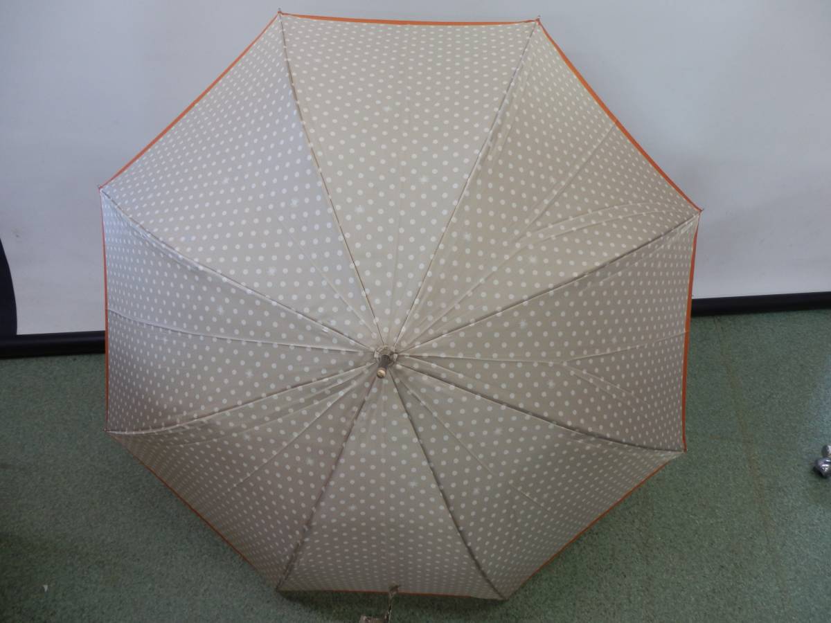 | 商品説明 | ☆生地に1箇所ペン汚れがありますが、目立つ程ではありません。 ☆ベージュに白のドット柄、所々ドットの周りにMICHEL KLEINの文字が入っていてフチは橙色です。 ☆手持ち部分に擦り傷、欠けている部分があります。 ☆あくまで中古商品となりますので、完璧をお求めの方は、ご購入をお控え下さい。 <商品サイズ、自社採寸> 全長:約90.5cm オープン時直径:約101.5cm 重量:約365g 開閉:ジャンプ式 カバー:無 *画像の色合いはお使いのPC/スマホ/携帯画面の環境により影響を受けます* 購入時期・試用期間 不明です。 |