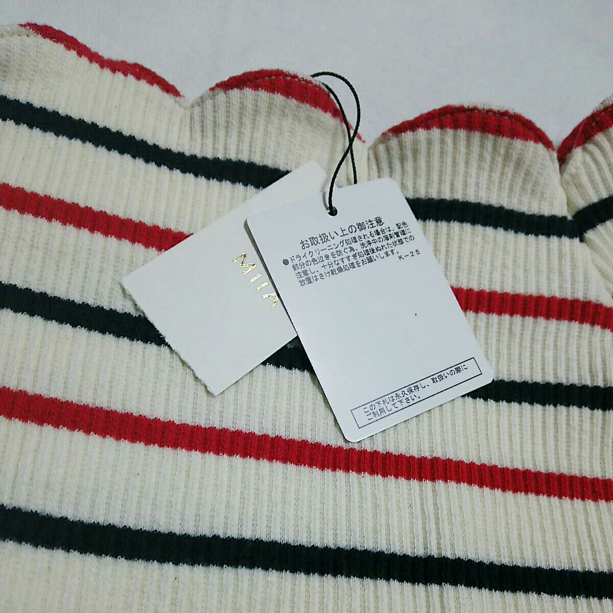 MIIAで購入した人気のスカラップオフショルダートップスです