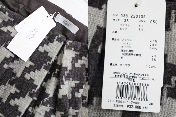 定価3万2千円 新品*BODY DRESSING ボディドレッシング*千鳥格子 ボックスプリーツ フレアニットスカート 36(S)【495-5751】