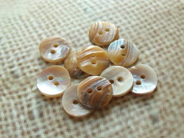 | ◆商品説明◆ | 非常に珍しい貝ボタンです。 この貝釦は非常に扱いにくいため他社では、ほとんど取り扱っておりません。 オリジナル商品です。 この貝ボタンには、いろいろな色があるのが、最大の特徴です。 (本来貝ボタンの色は、その貝1種類に対して1色です) ナチュラル素材の生地になら、何でも良く合います。 線が入っている面が、一応表ですが、裏面を使用してもかわいいです。 薄茶色のほかに、白系、茶色系、黒系、青系があります。 順次出品していきます。 サイズも11.5mm.13mm.15mm.18mm.20mm.23mm.25mm がありますので、他のサイズをご希望なら、申し出ください。 即対応いたします。 13mmを10個セットにしてます。シャツ1着分です。 裏表使えます。、ナチュラル系のシャツなら、何でも合うすぐれものです。 ボタンを変えると驚く程、洋服のセンスがアップします。 一度おためしあれ。 | ||