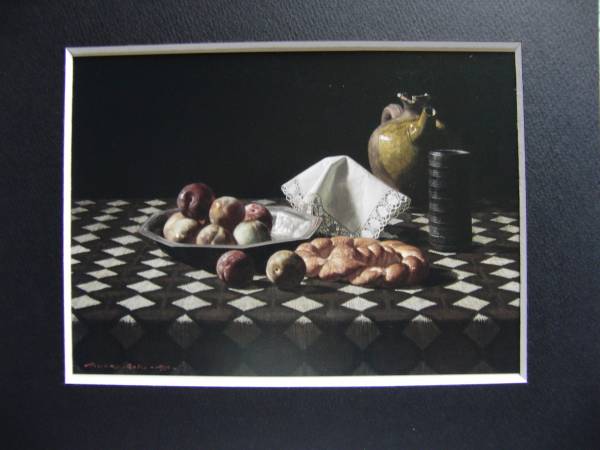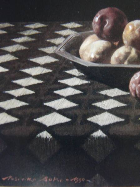 青木敏郎、【ソルダムとレースのある静物】、希少画集画、高級新品額・額装付、状態良好、送料無料